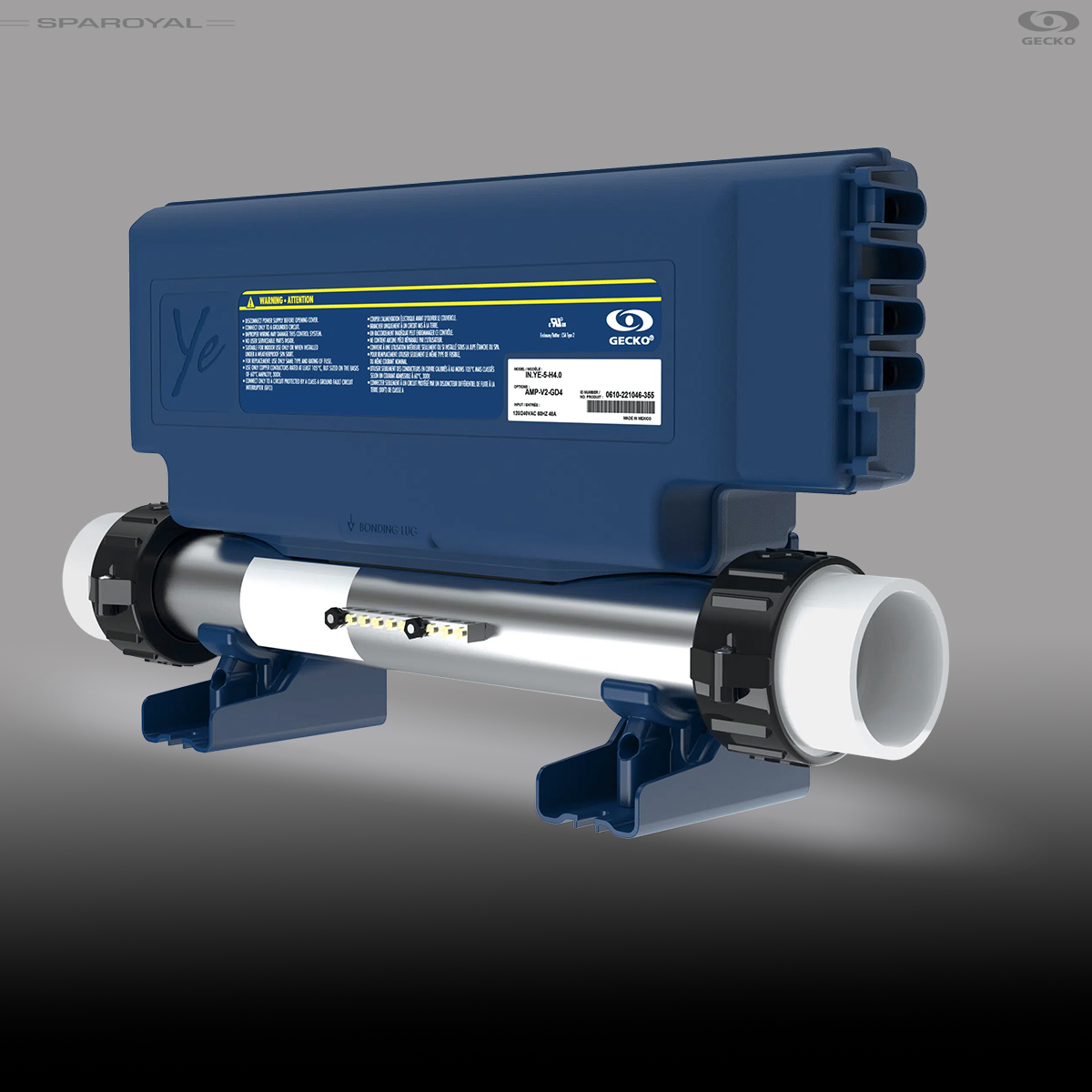 Modellen er blevet opgraderet med det avancerede Gecko in.ye-V3 kontrolsystem, som strengt taget ikke er nødvendigt, men ved brug af dette system, der oprindeligt er designet til større spabade, bliver spaen mere robust og stabil, hvilket i høj grad reducerer behovet for service.