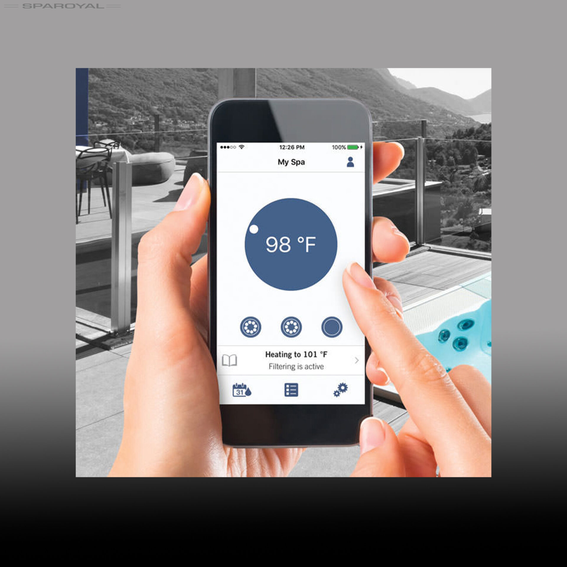 Ved hjælp af den mobile fjernbetjening kan du nemt justere temperaturen på spabadet, så det er perfekt opvarmet, når du ankommer. Hvis der opstår et strømbrud, vil in.touch 2 sende dig en meddelelse, så du er opmærksom på situationen og kan træffe de nødvendige foranstaltninger. Du kan have fuldstændig ro i sindet, velvidende at du altid vil være opdateret om dit spabad, uanset hvor du befinder dig.